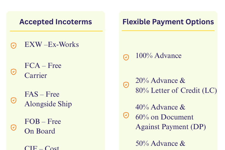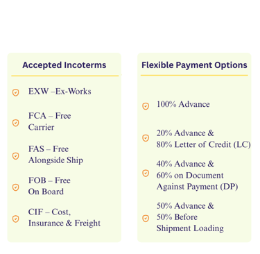 “We offer flexible trade and payment options tailored to your shipping and financing needs.”